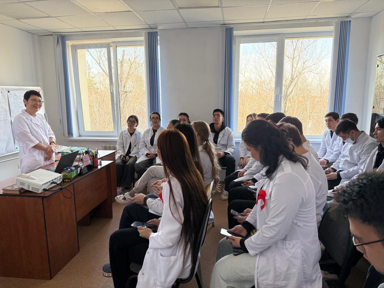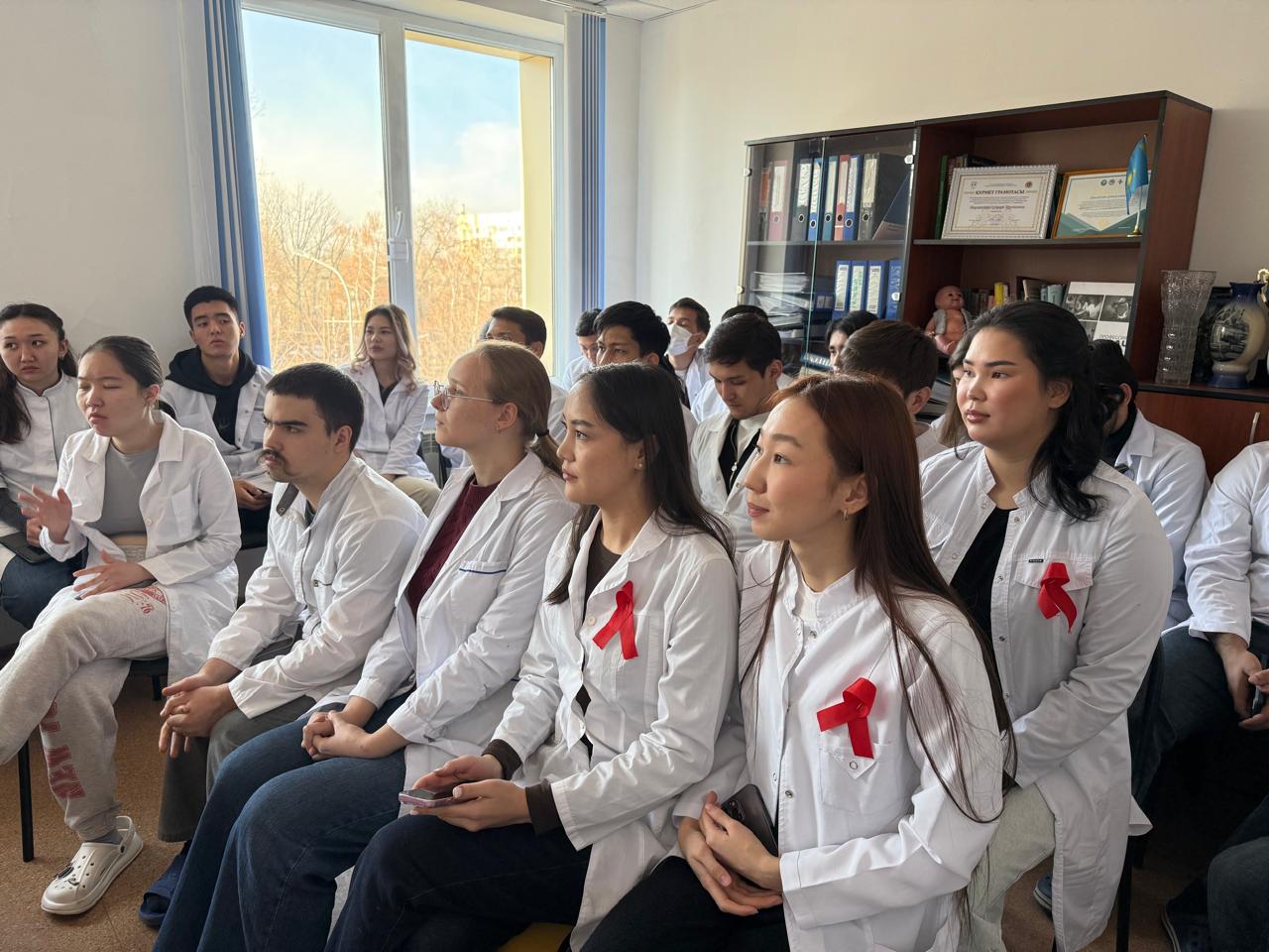 В рамках ежегодных мероприятий, приуроченных к Всемирному Дню борьбы со СПИДом (1 декабря), Кафедра детских болезней им. Н.А. Барлыбаевой организовала и провела значимое просветительское событие на базе Детской городской клинической больницы №2 (ДГКБ №2) со студентами мед 22-062р, мед 22-63р и мед22-043к , преподаватели Албакова А.А, Кабикен А.С.