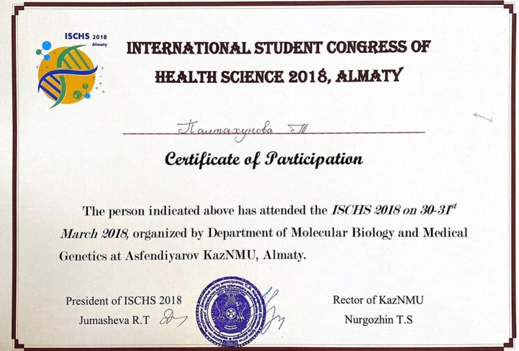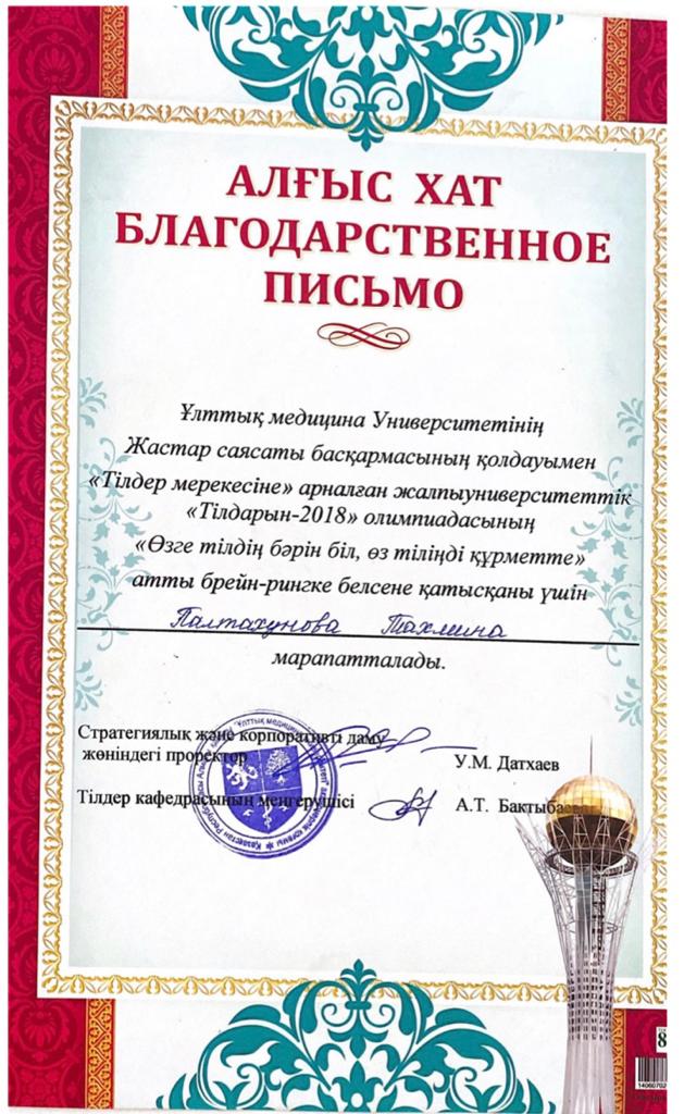 Усенова Тахмина – студентка 5 курса, Школы Педиатрии