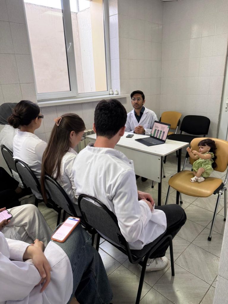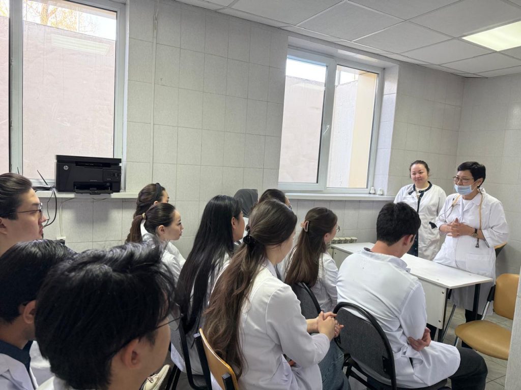 7 апреля Всемирный день здоровья. По плану воспитательной работы ППС кафедры детских болезней им.проф.Н.А.Барлыбаевой: Мырзабекова Г.Т., Рамазанова Ш.Х., Кабикен А.С., Албакова А.А. со студентами группы Stom22-050a, Stom22-051a, Стом22-022к провели открытый урок, посвящённый Всемирному дню здоровья 🩺