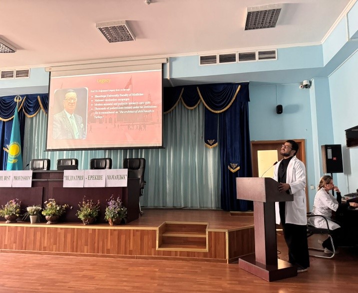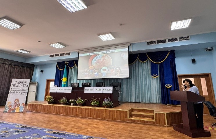 Сегодня 21.11.2025 года кафедра детские болезни имени профессора Н. А. Барлыбаевой провела мероприятие, приуроченное к Международному Дню Педиатра. В организации и проведении активно участвовали преподаватели кафедры совместно с обучающимися , на базе Детской Городской клинической больницы №2» г.Алматы. Мероприятие открыла и выступила с приветственным словом зав.каф. детские болезни профессор Ташенова Гульнара Талиповна. В рамках программы сначала был заслушан доклад о развитии педиатрии Казахстана, представленная ассоциированным профессором Рамазановой Шолпан Хамзаевной. Далее прозвучали доклады на тему «История педиатрии в Турции», который презентовал студент 4 курса специальности «Общая медицина» Zeyad Hassan и студентки «Development of pediatrics in India», группа 22-080 M.Ahshika, B.Iqbal под руководством ассоциированного профессора Садыковой Алтынай Женисовной.