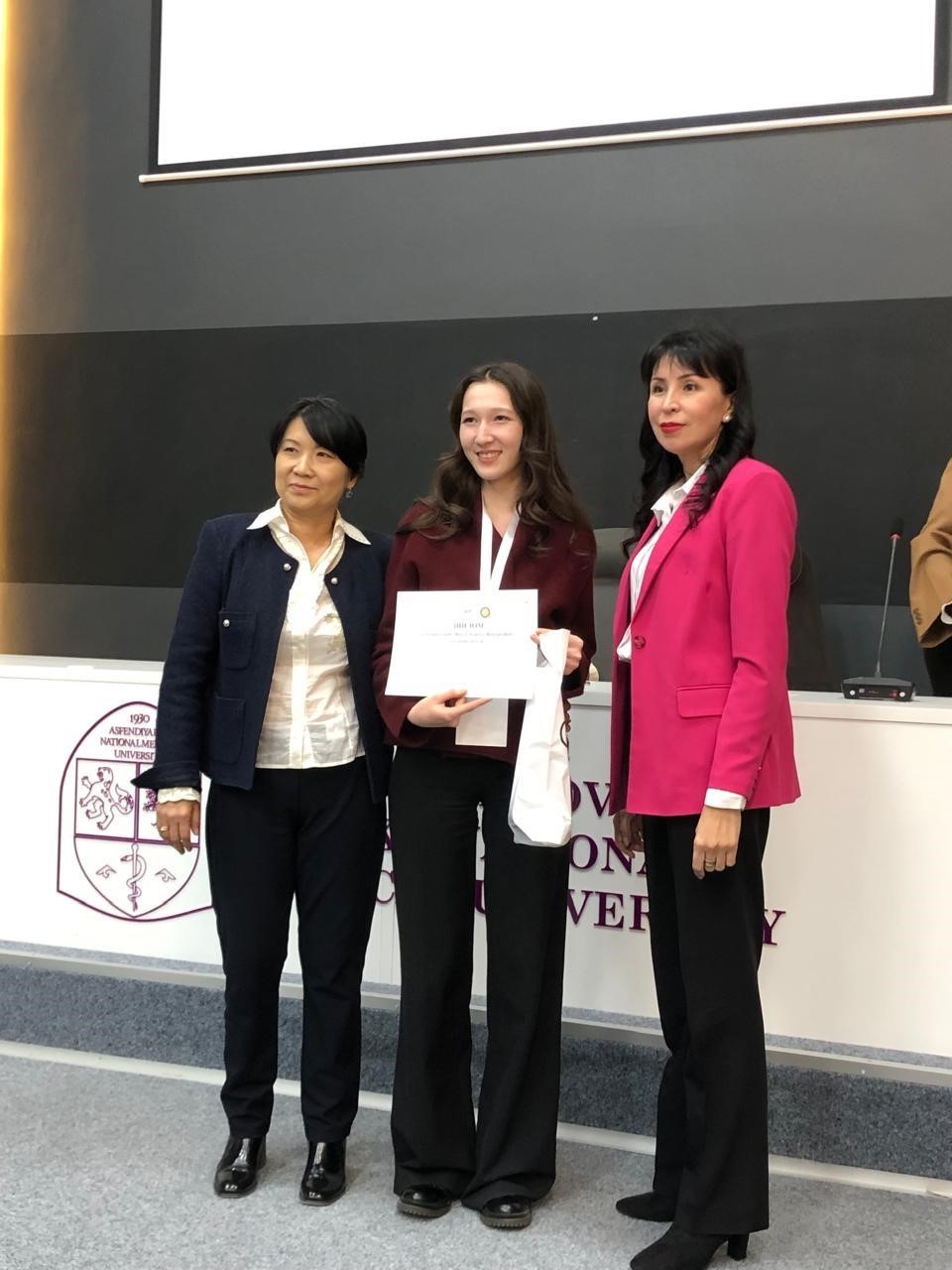 - III дәрежелі үздік баяндама – Оразымбет Диана Тілегенқызы, «Балалардағы жұқпалы және аутоиммундық аурулардың алдын алудағы Д дәруменінің рөлі» тақырыбында, ғылыми жетекшілері: профессор Абугалиева Т. О., Зиятдинова М. З.